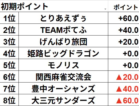 各チーム初期ポイントを持った上でスタート